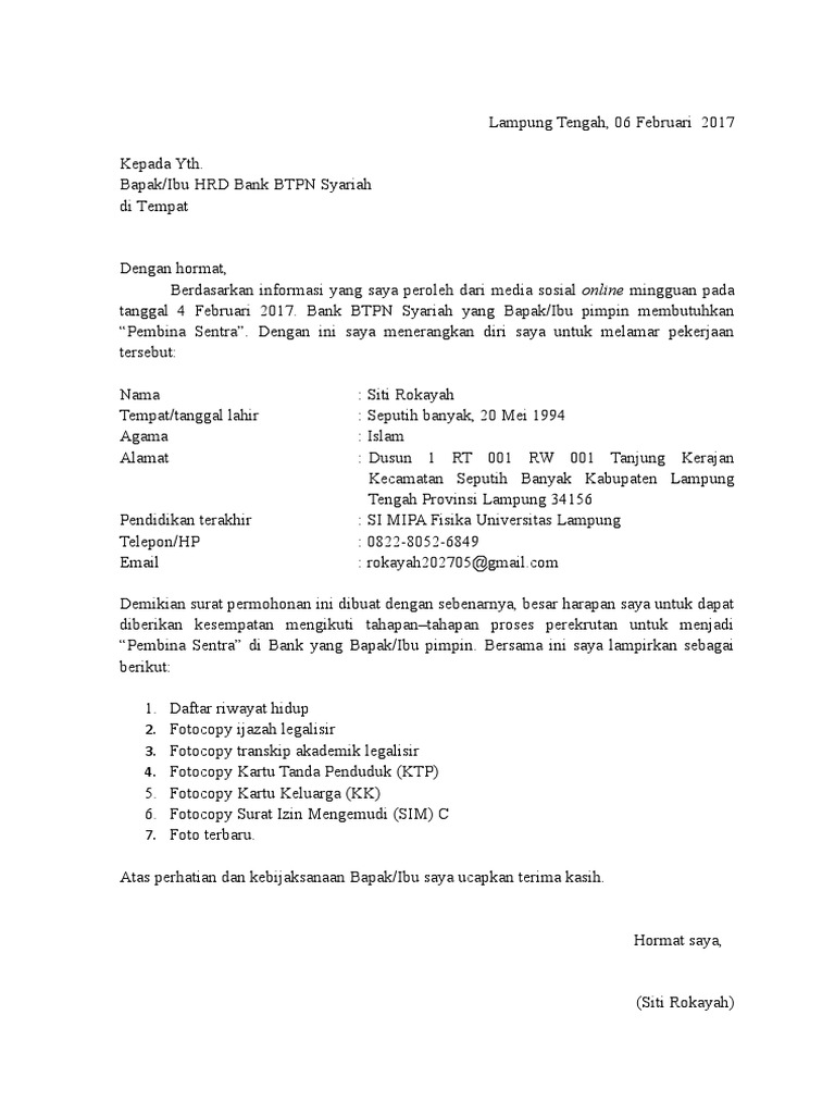 Persyaratan melamar kerja di bank archives jadiberkah com. Syarat surat lamaran kerja agar diterima. Lalu saya beritikad baik membantu karena. Syarat melamar kerja di bank btpn. Hal utama yang menjadi syarat melamar kerja di bank yaitu pendidikan.